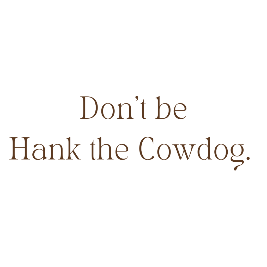 He blames this dog or that person or some other thing, but never sees how he contributes to the problem. Which means Hank never grows. He never sees a reason to grow. He’s not the problem.